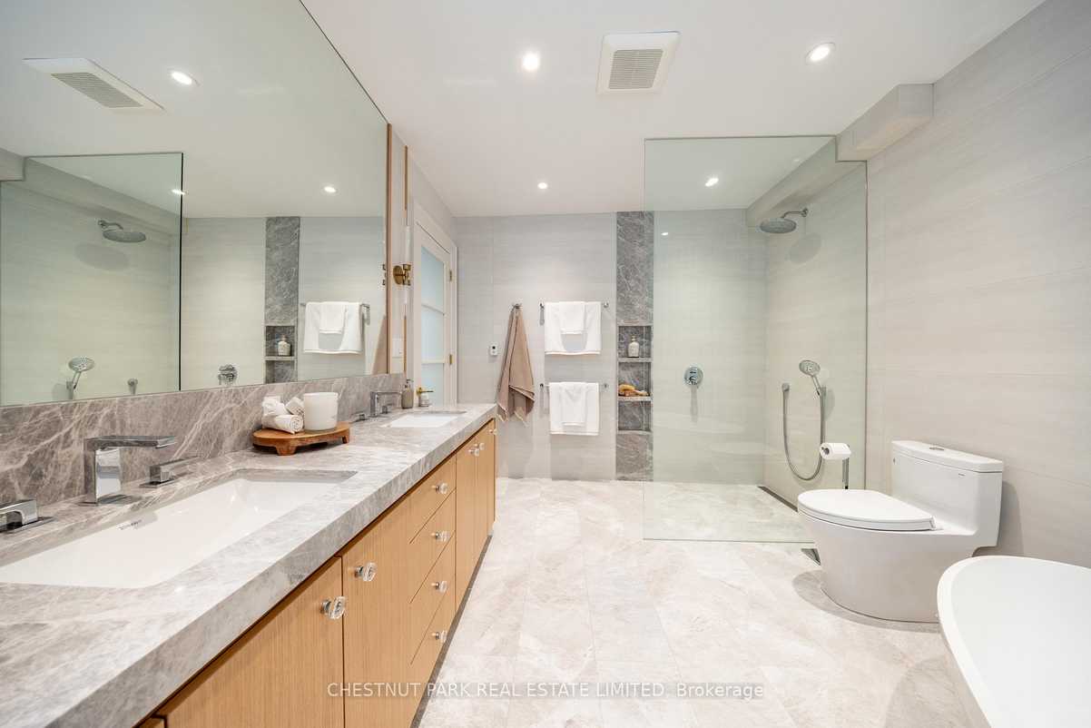 An ideal family home that checks absolutely ALL of the boxes, this gracious Moore Park home is an expansive & sophisticated space that adds quiet luxury and ease to everyday living. Perfectly situated on a premier 50×139 ft. lot and set on the area’s most iconic street, it’s distinguished by its many family-friendly elements, lovely blend of original details & modern, high-quality finishes and impressive size with 5332 sq. ft of living space across 4 floors. A classic centre-hall floorplan provides formal living and dining rooms, each with fireplace, while a large full-width addition at the back of house is the heart of the home with its large family room with custom built-ins, French doors & wood-burning fireplace; dining area with vaulted ceiling and skylights; and open-concept kitchen with cherry cabinets, granite counters & island with seating.5 large bedrooms; mudroom with separate entrance; fabulous lower level with large media room, guest bedroom, laundry room, wine cellar and storage galore; oversized garage; wide driveway and in-ground pool are a few of those special features families covet. A primary suite on the 2nd floor with striking, designer 5-piece ensuite with gorgeous finishes including a curb-less shower, soaker tub, grey marble flooring, rift-sawn white oak double vanity, brass sconces & large walk-in closet with LED lit clothing racks is a stylish, spacious retreat. Beautiful millwork abounds including in the 2nd bedroom, currently used as an office with built-in desks & shelves. The large backyard with in-ground pool is built for fun writ large & is an ideal space for summer lounging, relaxing with a morning coffee or hosting dinner or birthday parties. Easy access to so much including excellent schools such as OLPH, Whitney PS, The York School, Branksome; TTC; TO’s Ravine system; parks including beloved Moore Park; Downtown; and the fab shops & cafes on Yonge. This home was designed for living life to its fullest! Don’t miss it.