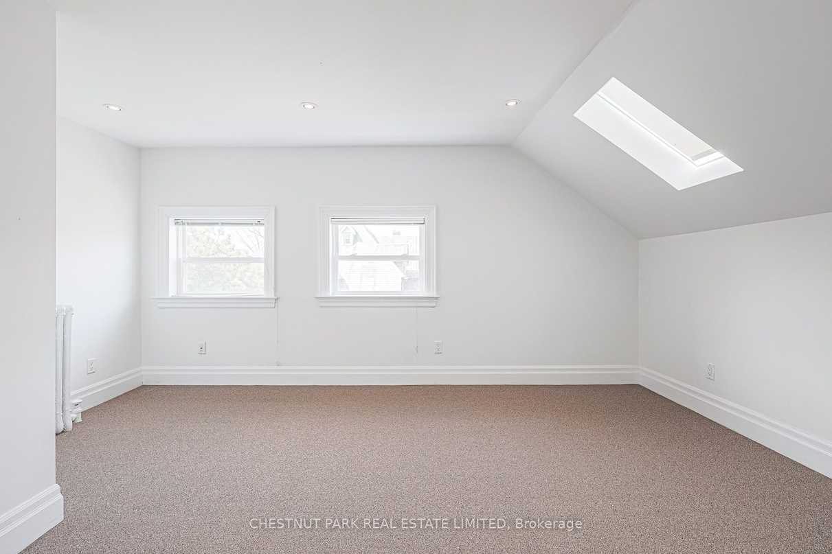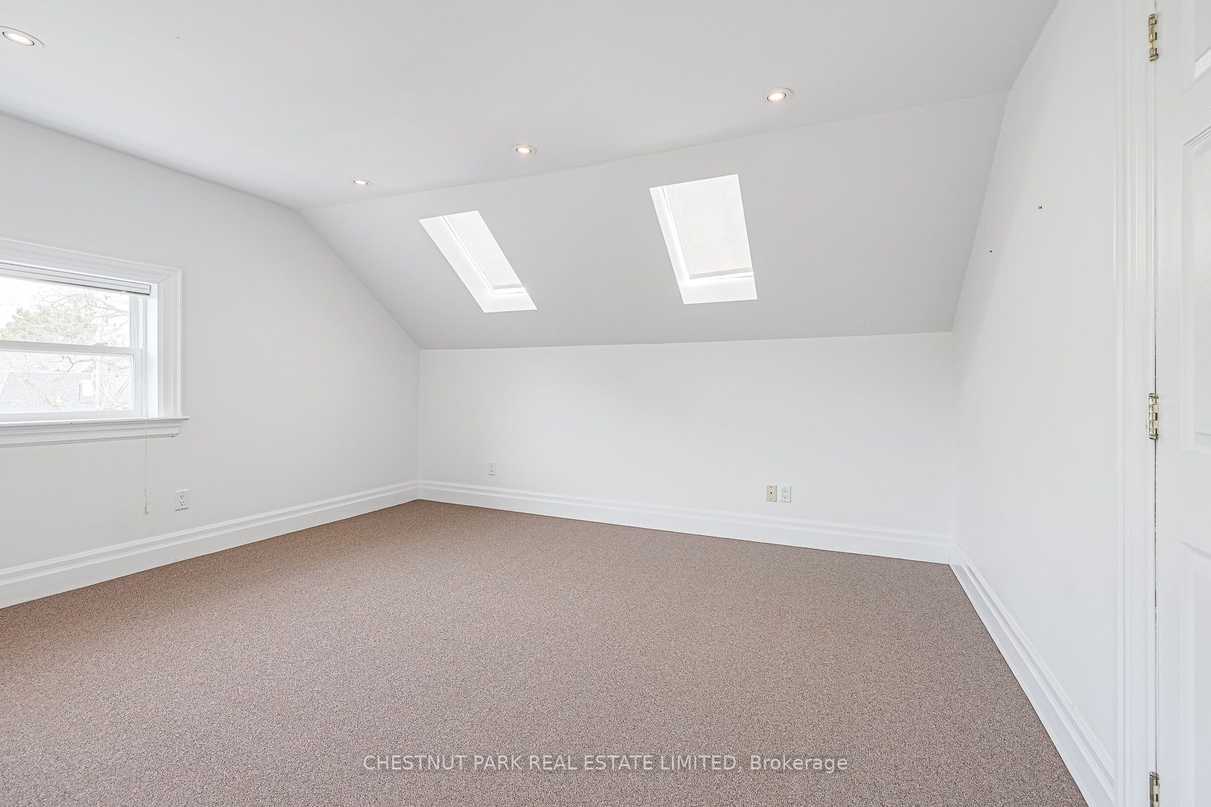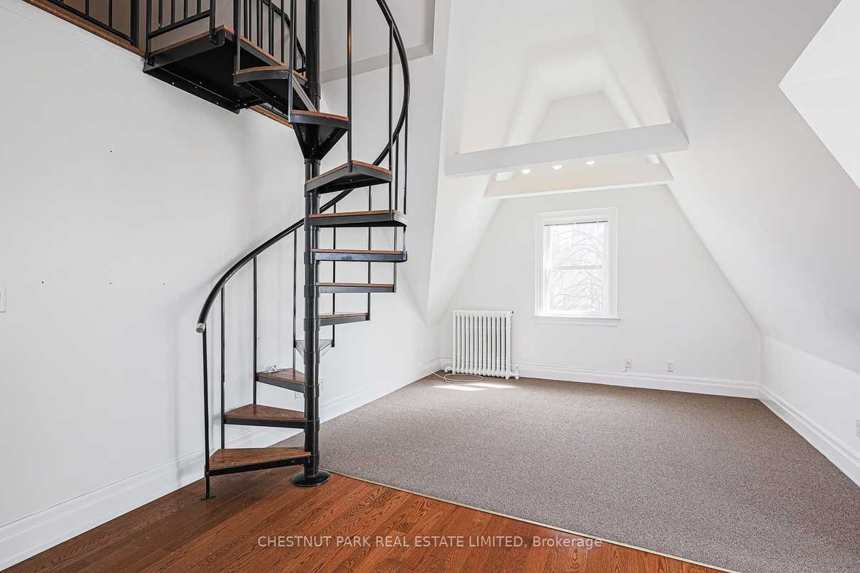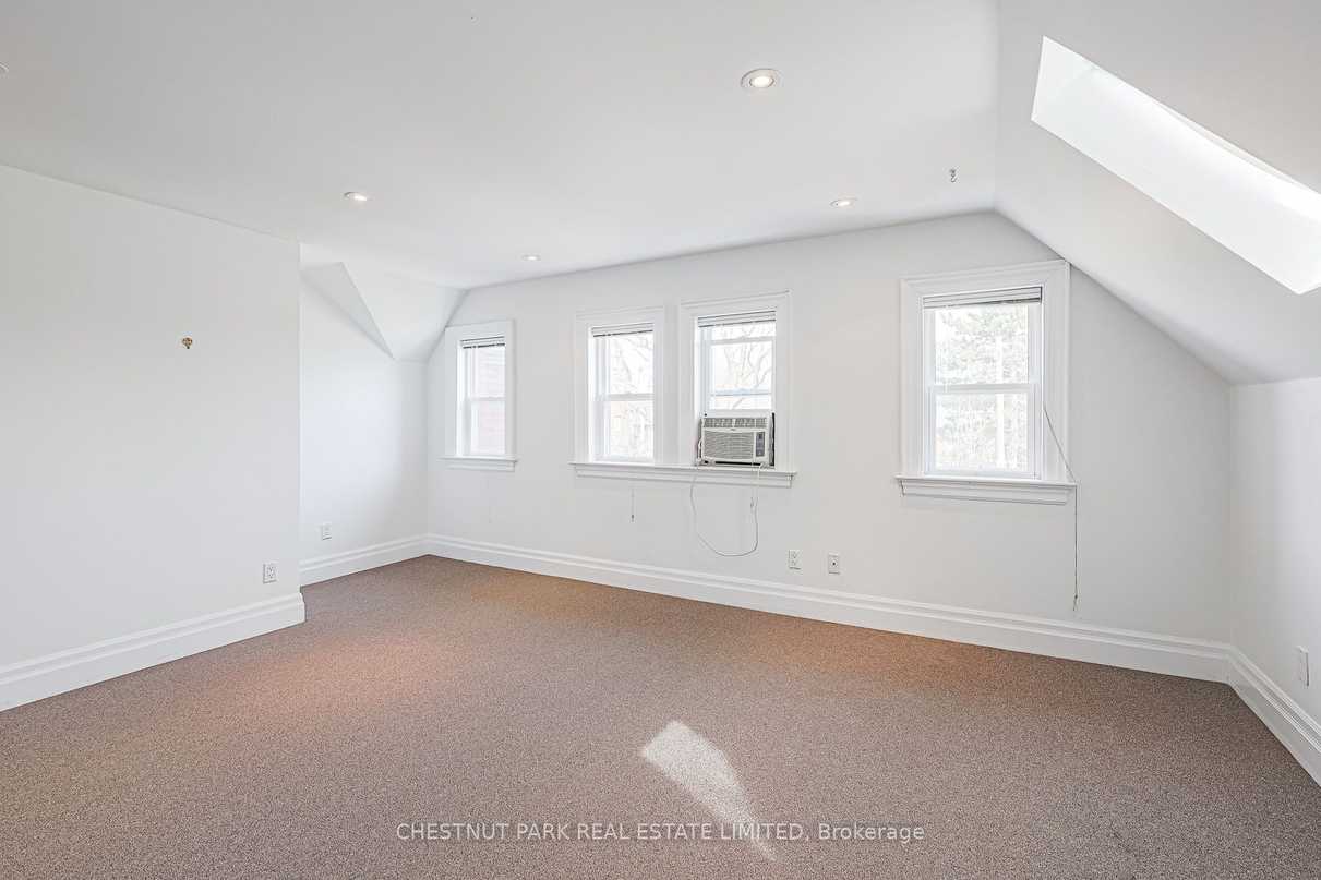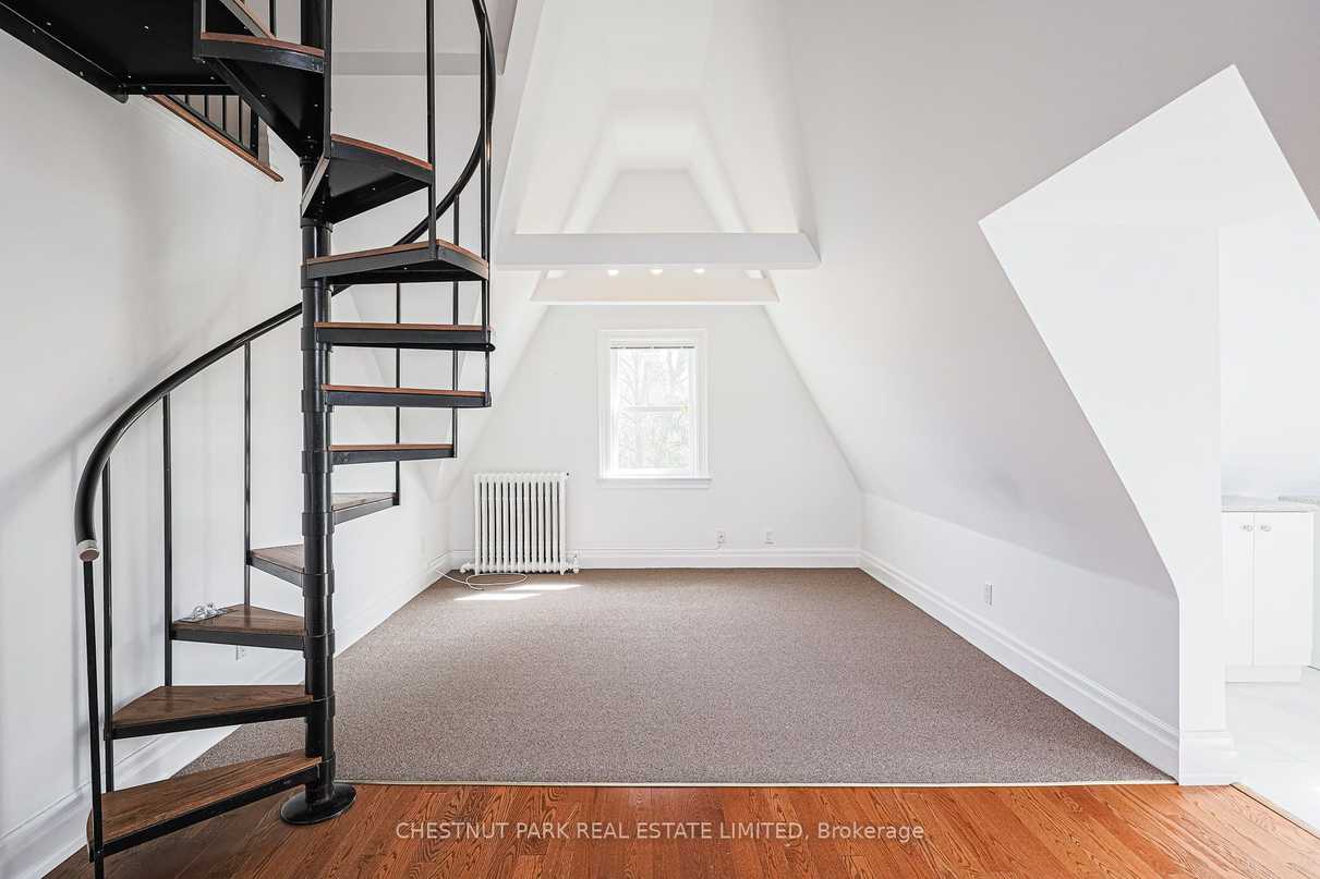 Located in a grand Rosedale mansion on a coveted street, this spacious apartment is an amazing lifestyle opportunity. A vaulted ceiling, skylights, and original details give this home a hip vibe and unmistakable charm. Exceptionally comfortable and private, the home is equipped with important conveniences like ensuite laundry, a well-equipped kitchen, a south-west facing deck, parking, a loft “bonus” space, and ample storage. A gracious living/dining room is an ideal space for decompressing or entertaining. 2 large bedrooms with double closets and skylights are ideal end-of-day retreats. An excellent location in the heart of one of Toronto’s coveted neighbourhoods provides easy access to ravines, the TTC, cafes, shops and so much more. This apartment is a gem. Don’t miss it!