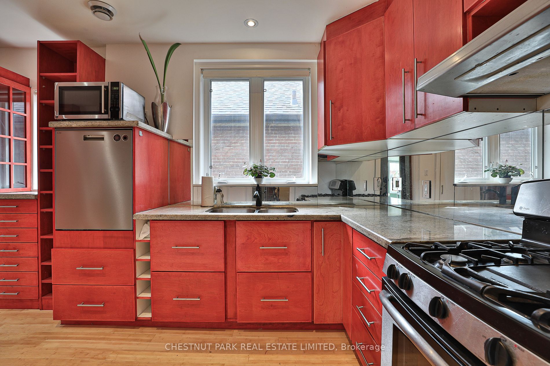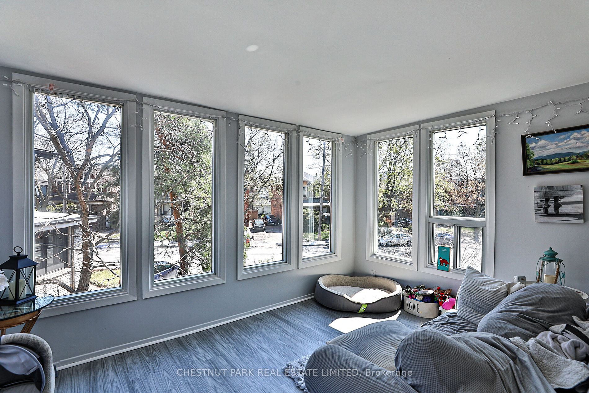 Spacious, charming, bright and ideally located, this home is a gem. Hardwood floors, a wood burning fireplace and windows galore give this unit an undeniable appeal. Well-maintained & supremely functional, this home’s highlights include: a large kitchen with stainless steel appliances and loads of storage; a private primary suite with ensuite, walk-in closet and sitting area; two other large bedrooms; a lovely deck situated in the tree-tops; and a character-rich living room with sunroom. With just over 2000 sq. ft., this is an exceptionally gracious home & special opportunity. Located in a quiet pocket but close to amazing amenities including the TTC, the Danforth’s vibrant shops & cafes & in the Jackman PS and Riverdale Collegiate catchment this opportunity is a stand-out. All utilities incl. EXCEPT hydro. Permit Parking through City of TO.